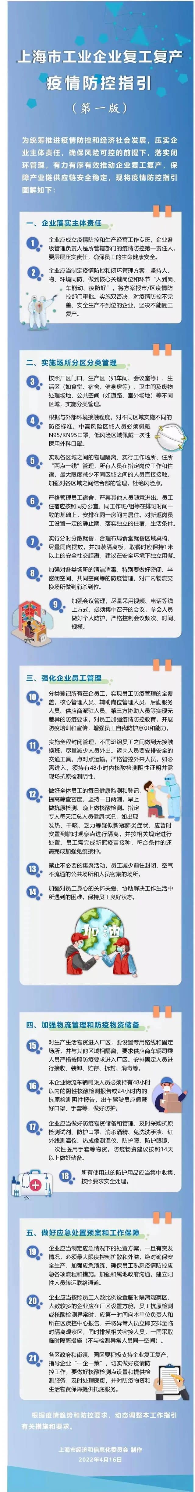 同日,上海市經信委發(fā)布《上海市工業(yè)企業(yè)復工復產疫情防控指引(第一版)》明確,各區(qū)政府和街鎮(zhèn)、園區(qū)要積極支持企業(yè)復工復產,指導企業(yè)“一企一策” ,切實做好疫情防控工作。同時,上海第一批重點復工企業(yè)“白名單”出爐,共計666家企業(yè)上榜。