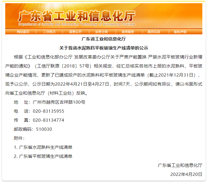 4月20日,廣東省工業(yè)和信息化廳公布了《2021年廣東省水泥熟料平板玻璃生產(chǎn)線清單》,截至2021年12月31日,廣東省內(nèi)共計(jì)78條水泥熟料生產(chǎn)線,其中7條生產(chǎn)線已停產(chǎn)。