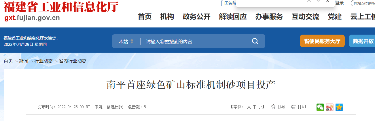 近日,在南平市建陽區(qū)麻沙鎮(zhèn),井窠建筑用凝灰?guī)r(機制砂)項目通過驗收并投產。該項目是南平第一座按照綠色礦山標準執(zhí)行設計、建設的機制砂生產項目,預計年產碎石、機制砂150萬噸。