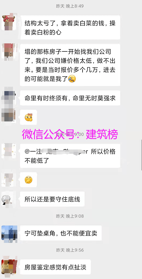 據(jù)知情人爆料,他們單位差點接了這個活,后來因為該房屋的報價極低,所以沒接。還有網(wǎng)友爆料說:該房屋的鑒定報告報價是1000,所以沒人接,后來多少錢成交的不確定。