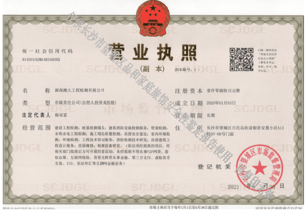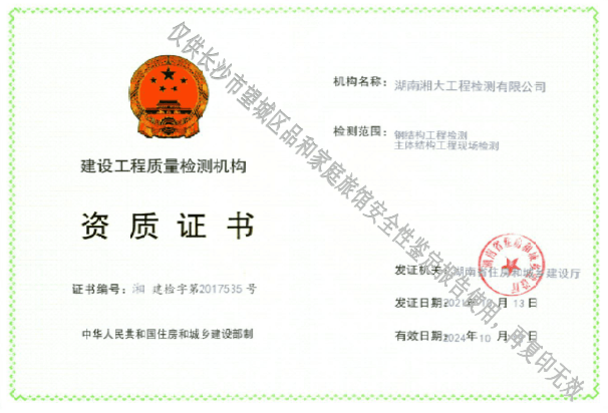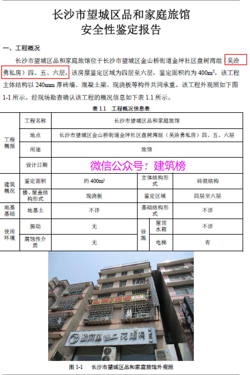 經(jīng)查,2022年4月13日,湖南湘大工程檢測有限公司(法人代表:譚某,公司性質(zhì):私營,注冊地:望城區(qū)月亮島街道)對該自建房家庭旅館(4、5、6樓)進行房屋安全鑒定后出具虛假房屋安全鑒定報告,公司法人代表譚某及技術(shù)人員寧某、湯某、劉某、龔某等5人涉嫌提供虛假證明文件罪。