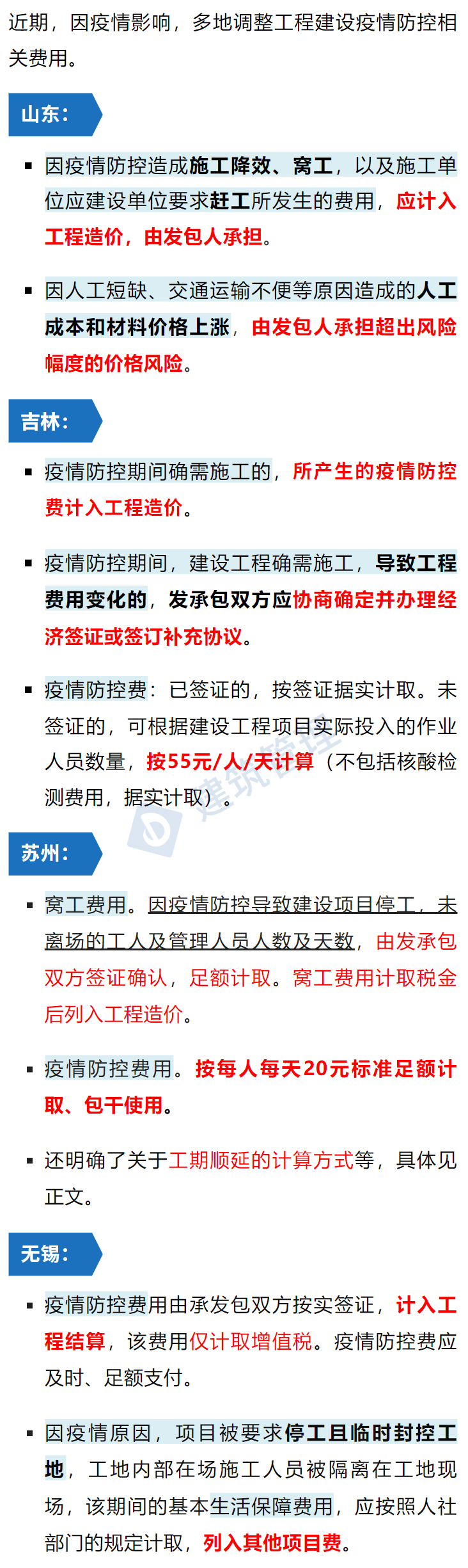 多地調(diào)整工程建設(shè)疫情防控相關(guān)費(fèi)用:
