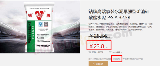一袋P.S.A32.5R水泥售價(jià)23.8元;一袋P.O42.5R水泥售價(jià)30元,且都明確20包起售。