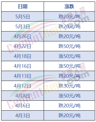 以鄭州市為例,近一個(gè)月以來,水泥價(jià)格分別于4月8日、16日、18日三輪上調(diào),累計(jì)漲價(jià)150元/噸,同期,連續(xù)八輪下跌,累計(jì)跌價(jià)達(dá)200元/噸。