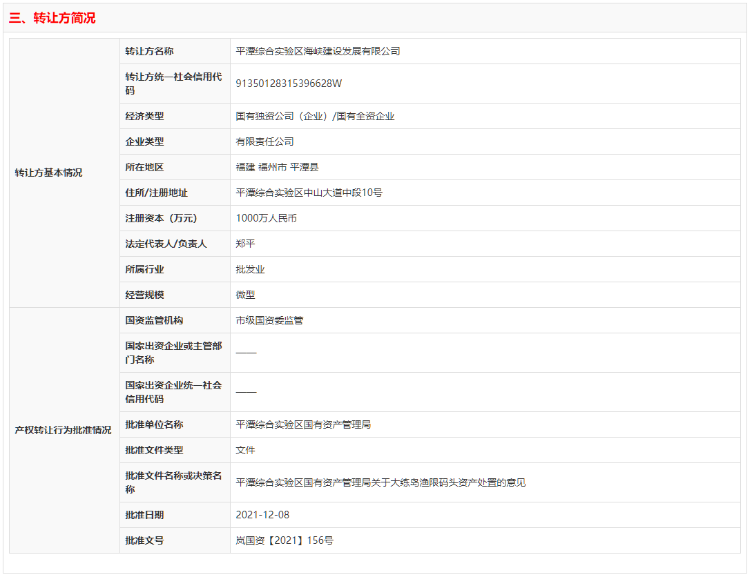 日前,福建省產(chǎn)權(quán)交易中心發(fā)布《平潭綜合實(shí)驗(yàn)區(qū)大練島漁限碼頭水泥攪拌站、透水鋼結(jié)構(gòu)碼頭資產(chǎn)處置》項(xiàng)目,掛牌價(jià)格為421.65萬元。
