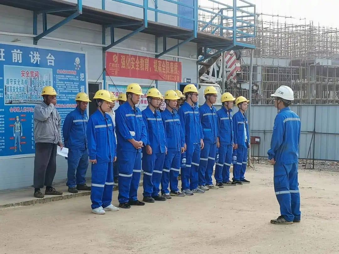 對于項目來說“安全就是效益”,華宏水泥項目青年突擊隊隊員們時刻把“安全第一,預(yù)防為主”的觀念牢記心頭。他們每天在施工前召開班前會,對每位管理人員及作業(yè)班組分別進(jìn)行安全技術(shù)交底,讓每個人了解自己所在施工區(qū)域的安全隱患以及風(fēng)險防范措施;每周組織隊員檢查施工區(qū)域內(nèi)的臨邊防護措施是否牢固可靠,危險區(qū)域的安全警示標(biāo)志是否缺失,安全防護用品是否還能滿足施工需求等,并積極組織開展消防演練,為項目安全生產(chǎn)保駕護航。在他們的堅持努力下,項目建設(shè)至今無任何安全質(zhì)量事故發(fā)生。