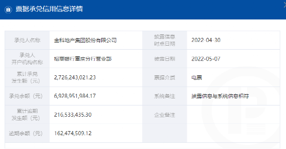 金科地產(chǎn)集團股份有限公司依然在逾期名單之中,查詢金科地產(chǎn)4月末商票累計逾期金額達2.17億元,月末逾期余額為1.62億元,金額較3月有所擴大。