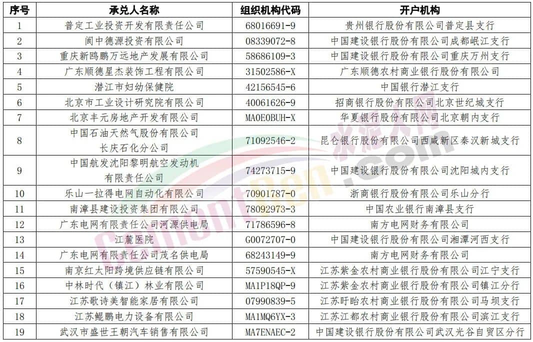 19家企業(yè)承兌人信息與工商登記信息不一致,或存在假冒商票問題