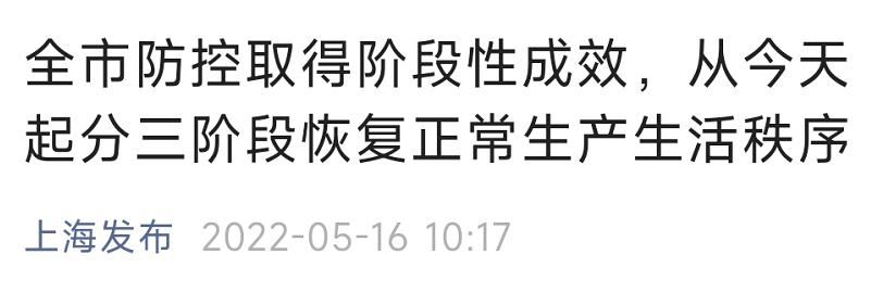 目前,上海已經(jīng)明確了下一步防控工作,分為“三個(gè)階段”。第一階段:鞏固清零攻堅(jiān)“十大行動(dòng)”成果階段。第二階段:向常態(tài)化防控轉(zhuǎn)換階段。第三階段:全面恢復(fù)全市正常生產(chǎn)生活秩序階段,并明確6月1日至6月中下旬,在嚴(yán)格防范疫情反彈、風(fēng)險(xiǎn)可控的前提下,全面實(shí)施疫情防控常態(tài)化管理,全面恢復(fù)全市正常生產(chǎn)生活秩序。