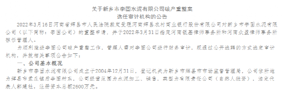 4月8日新鄉(xiāng)李固水泥有限公司管理人發(fā)布《關(guān)于新鄉(xiāng)市李固水泥有限公司破產(chǎn)重整案選任審計(jì)機(jī)構(gòu)的公告》稱,2022年3月16日河南省輝縣市人民法院裁定受理河南輝縣農(nóng)村商業(yè)銀行股份有限公司對(duì)新鄉(xiāng)市奪固水泥有限公司的重整申請(qǐng),并指定管理人。為順利推進(jìn)奪固公司破產(chǎn)重整工作,管理人需對(duì)李固公司進(jìn)行財(cái)務(wù)審計(jì),并公開選聘的方式逸定審計(jì)機(jī)構(gòu)。
