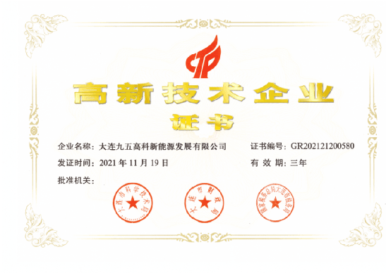 大連九五高科新能源發(fā)展有限公司多項(xiàng)余熱發(fā)電相關(guān)專利技術(shù),且榮獲了高新技術(shù)企業(yè)證書(shū)。