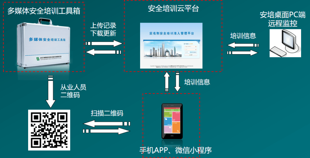 多媒體安全培訓工具箱體積小巧、便攜易用,采用軟件、硬件高度集成一體化設計,以電腦主機為主體、內置多媒體安全培訓智能軟件和及專業(yè)的多媒體課程,集成身份證識別儀、指紋識別儀、IC/ID卡識別儀、人臉識別儀、高清攝像儀以及無線答題器等,集實名制信息采集、多媒體培訓、無紙化考試、自動考勤建檔、云端記錄同步、智能門禁對接等實用功能于一體,助力企業(yè)安全培訓工作的合法合規(guī)管理,為全面落實全員安全生產責任制提供有力抓手。