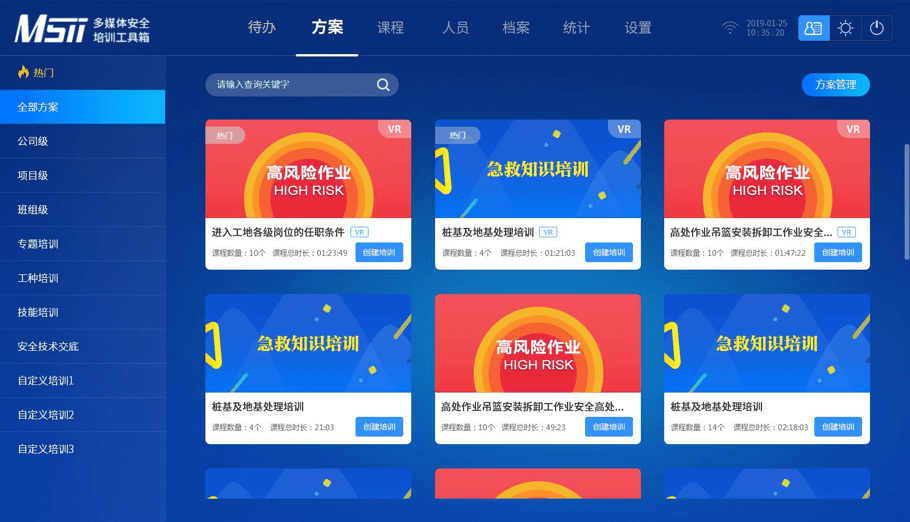 2、將零散的培訓建檔標準化、信息化,引入數字化、模塊化教學理念,無需繁瑣的準備工作,培訓負責人根據不同崗位、工種、職務為學員制定培訓計劃(包括內容、課程、學時等要素),開機即可進行安全培訓;