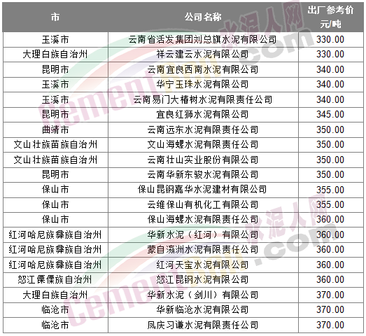 * 上述出廠參考價來源水泥人網(wǎng)信息中心人工采集,僅供參考。如與實際成交不符請以實際成交價格為準(zhǔn)。