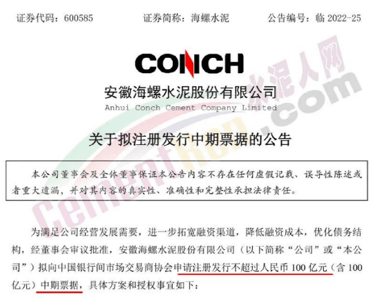 海螺水泥于6月16日晚間發(fā)布公告稱,為滿足公司經(jīng)營(yíng)發(fā)展需要,進(jìn)一步拓寬融資渠道,降低融資成本,優(yōu)化債務(wù)結(jié)構(gòu),擬申請(qǐng)注冊(cè)發(fā)行不超過人民幣100億元中期票據(jù)。募集資金主要用于補(bǔ)充流動(dòng)資金、償還有息債務(wù)和項(xiàng)目建設(shè)等符合國家法律法規(guī)規(guī)定的用途。