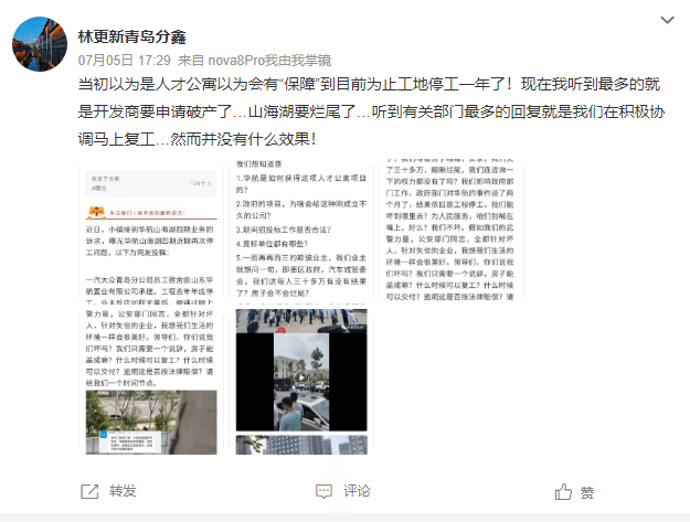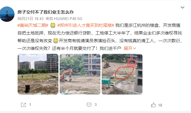 近期眾多網(wǎng)友在社交媒體上曬出項(xiàng)目停工的消息。據(jù)不完全統(tǒng)計(jì),6月下旬至今社交媒體上曬出的項(xiàng)目停工的消息涉及遠(yuǎn)洋山水、正榮地產(chǎn)、世茂集團(tuán)、融信中國(guó)、綠城地產(chǎn)、恒大、佳兆業(yè)、融創(chuàng)中國(guó)、陽(yáng)光城等多個(gè)地產(chǎn)龍頭企業(yè)。