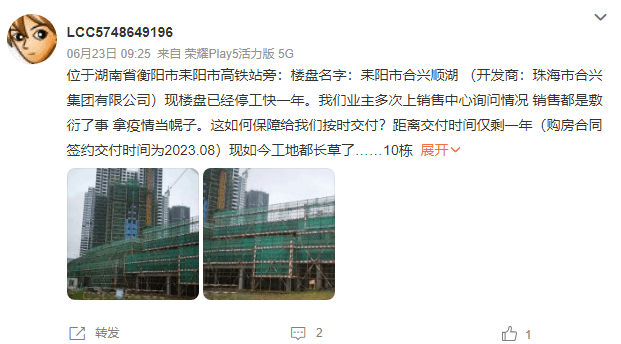 耒陽(yáng)市合興順湖 (開(kāi)發(fā)商:珠海市合興集團(tuán)有限公司)現(xiàn)樓盤已經(jīng)停工快一年。