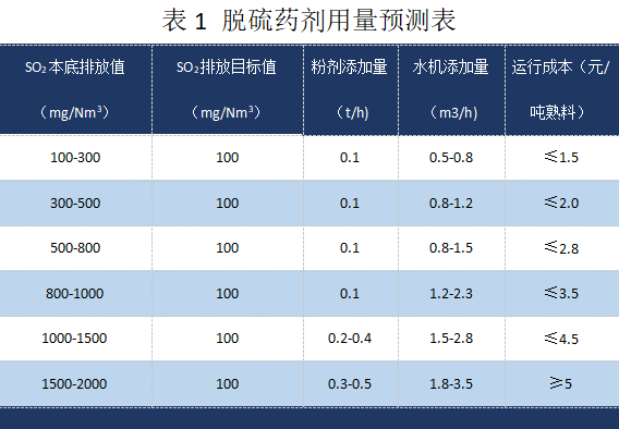 高效脫硫粉劑相關(guān)參照表