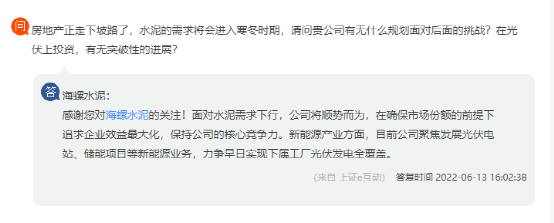 日前有投資者向海螺水泥提問,年初以來,全國水泥需求低迷,水泥熟料企業(yè)庫存高企,各地大打價格戰(zhàn),甚至低于成本價銷售,虧損、倒閉企業(yè)眾多,公司對此怎么看?有什么應(yīng)對措施?