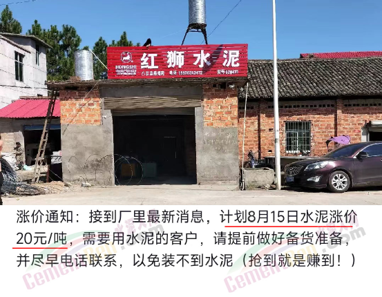 紅獅水泥經(jīng)銷商通知∶接到廠里最新消息,計劃8月15日水泥漲價20元/噸,需要用水泥的客戶,請?zhí)崆白龊脗湄洔蕚?,并盡早聯(lián)系,以免裝不到水泥(搶到就是賺到)。