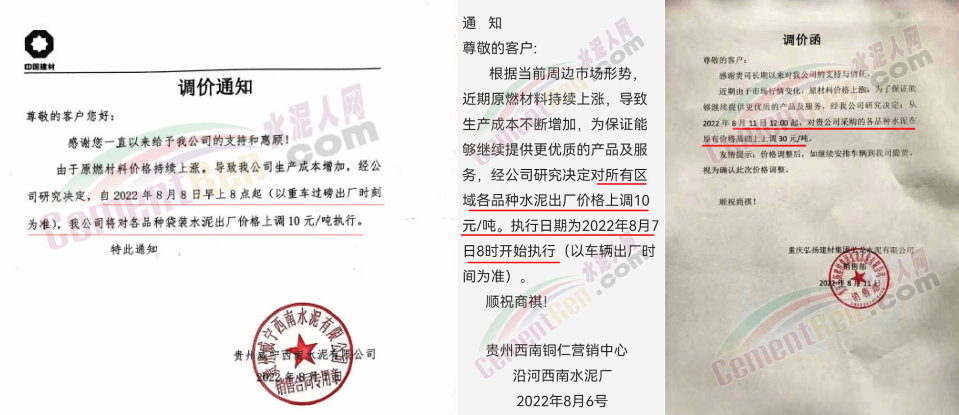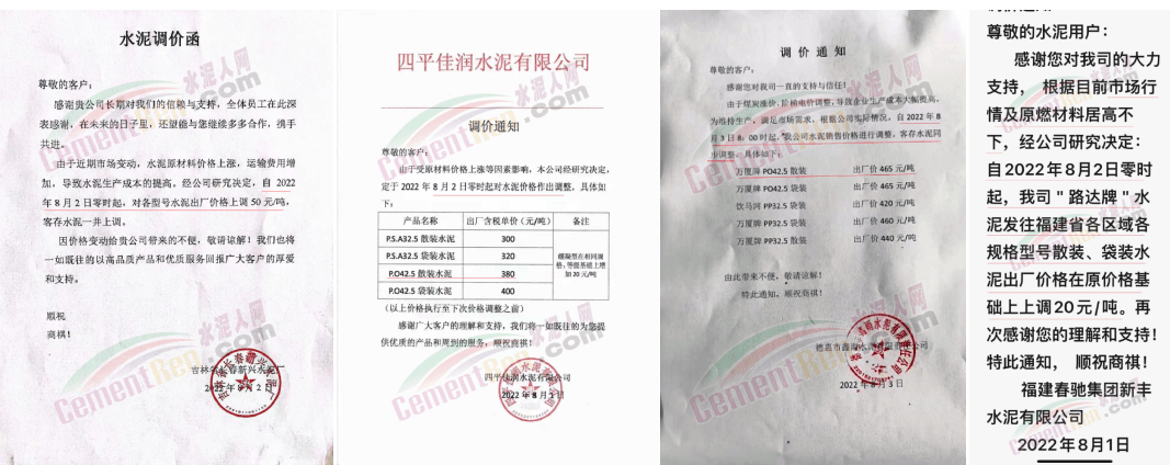 坪塘南方水泥通知,根據(jù)當前市場行情,經(jīng)公司研究決定,自2022年8 月12日上午8∶00時起,對所有區(qū)域,所有品種水泥價格上調(diào)20元/噸。