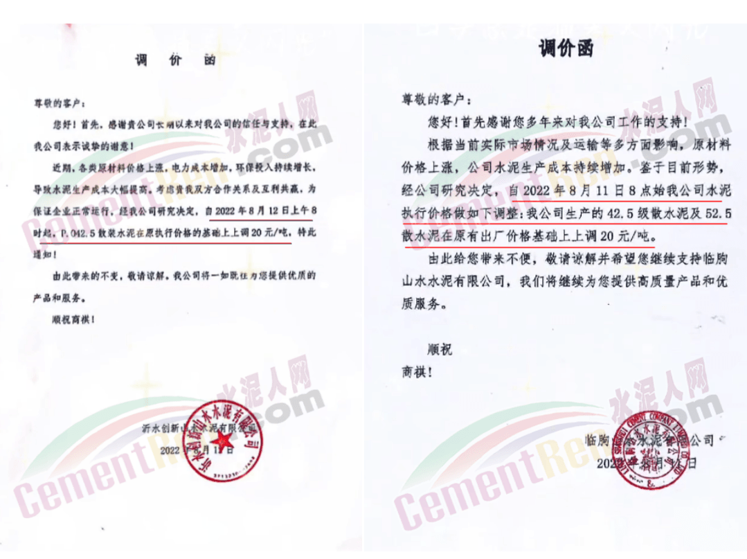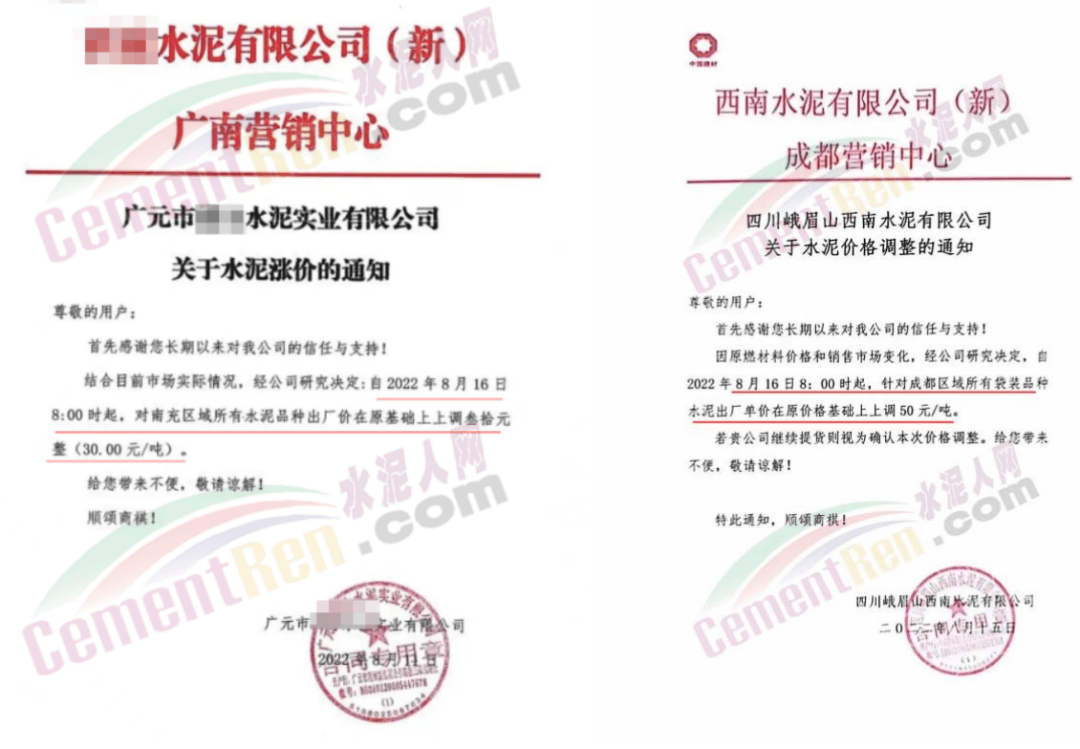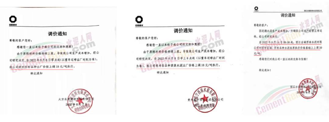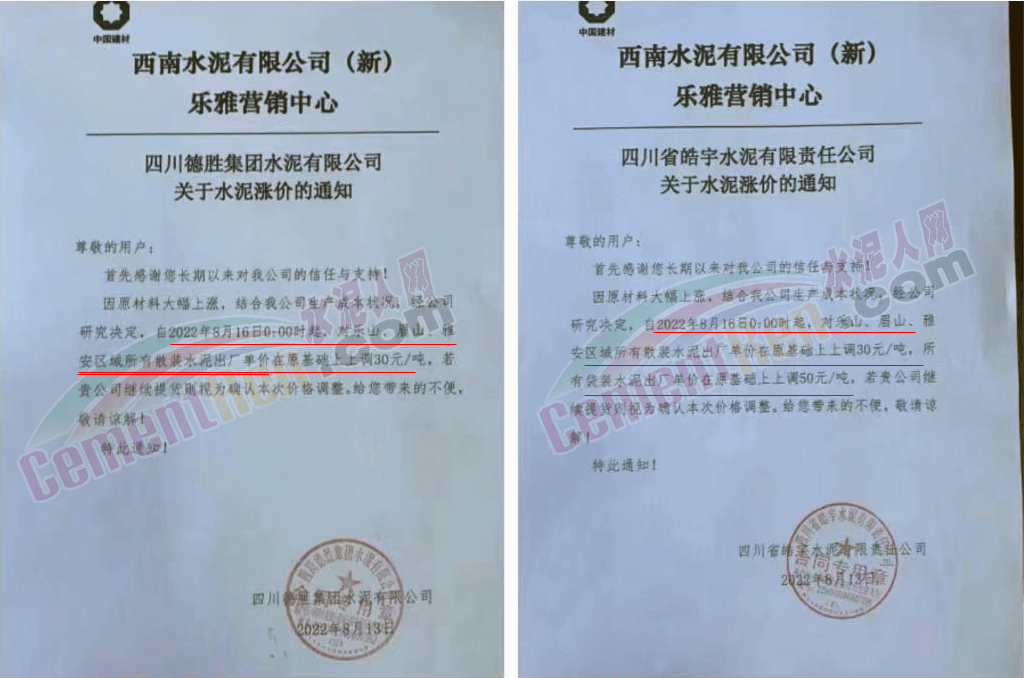 四川區(qū)域西南水泥旗下兩家企業(yè)發(fā)《緊急告知函》稱,由于四川省持續(xù)高溫天氣,電力供需緊張形勢(shì)進(jìn)一步加劇,四川省經(jīng)濟(jì)和信息化廳與國(guó)網(wǎng)四川省電力公司聯(lián)合下發(fā)紅頭文件。要求確保民生用電,工業(yè)電力用戶于2022年8月15日0:00至20日24:00時(shí)期間放高溫假,讓電于民、保障民生。鑒于此,公司將全面停產(chǎn),且無法保障客戶正常水泥使用需求。