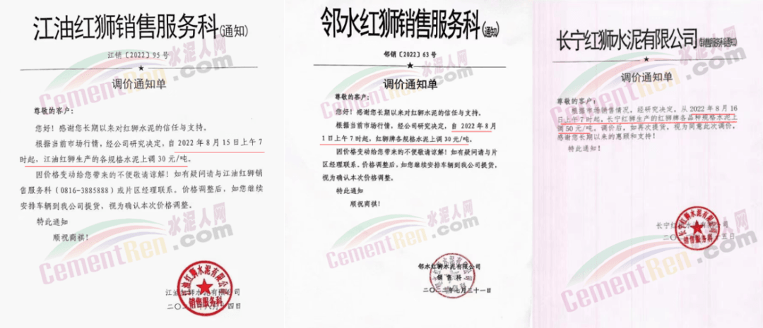 紅獅水泥廣西恒慶建材水泥格上調(diào)10元/噸;四川江油紅獅、鄰水紅獅水泥價(jià)格上調(diào)30元/噸,長(zhǎng)寧紅獅上調(diào)50元/噸;貴州龍里紅獅上調(diào)10元/噸;福建南安紅獅上調(diào)10元/噸,漳平紅獅、大田紅獅水泥上調(diào)20元/噸;江西宜春紅獅上調(diào)20元/噸。