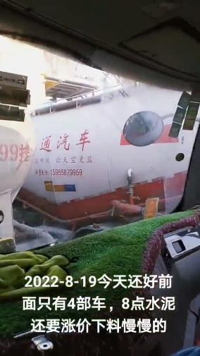 8月19日早晨,在河南同力排隊的司機表示:“前面只有4部車,8點水泥還要漲價,下料慢慢的”。