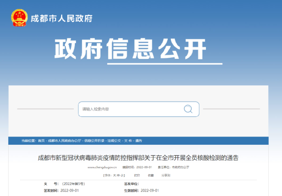 繼川渝地區(qū)高溫限電之后,疫情又卷土重來。日前,成都市新型冠狀病毒肺炎疫情防控指揮部發(fā)布關于在全市開展全員核酸檢測的通告。