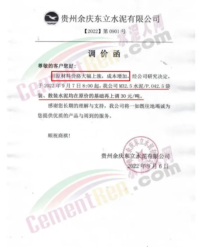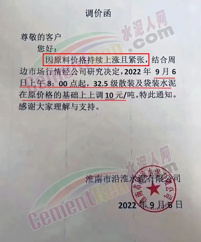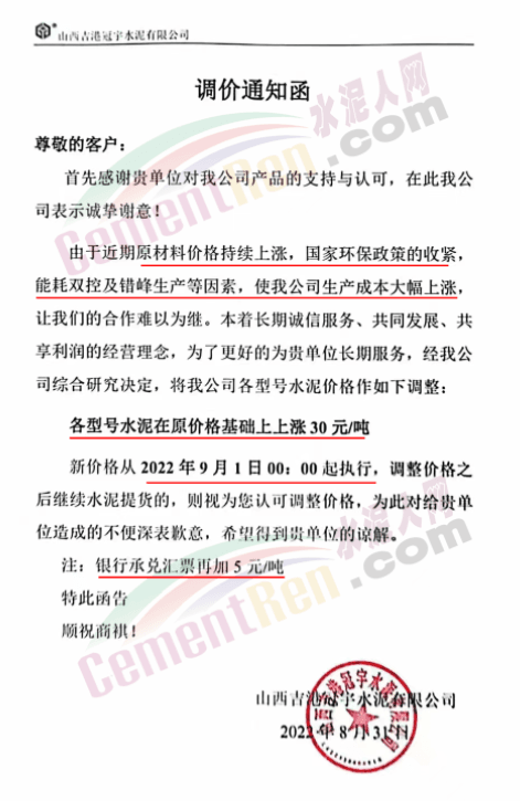 由于煤炭?jī)r(jià)格的不斷攀升,讓下游的水泥企業(yè)成本急劇上升,水泥企業(yè)也紛紛亮起漲價(jià)大旗,開(kāi)始了漲價(jià)模式。企業(yè)漲價(jià)通知多稱(chēng)因原燃材料價(jià)格上漲,成本增加。