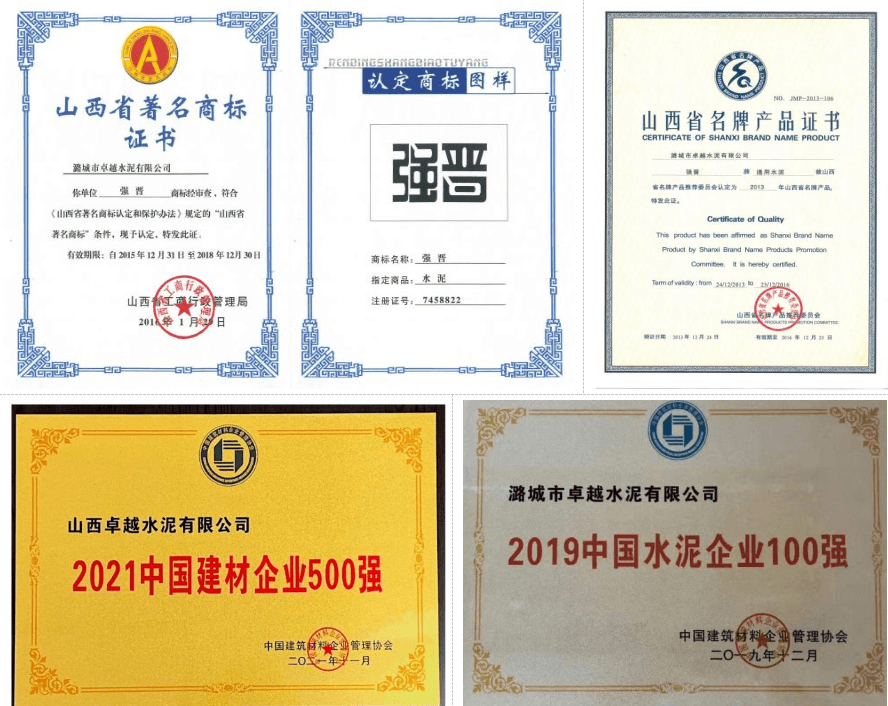 山西卓越水泥有限公司(原名為潞城市卓越水泥有限公司)(以下簡稱“卓越水泥”),成立于2006年4月18日,擁有一條日產(chǎn)4000噸熟料新型干法水泥生產(chǎn)線。 主導產(chǎn)品有“強晉”牌水泥熟料、通用32.5、42.5、52.5水泥、 低熱硅酸鹽水泥、道路硅酸鹽水泥等,產(chǎn)品是山西省“名牌產(chǎn)品”;“強晉牌” 商標被認定為山西省“著名商標”。