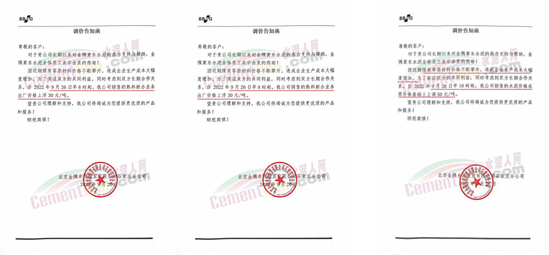 湖北武漢、荊門以及十堰等主要品牌企業(yè)通知,9月25日起上調(diào)水泥價(jià)格30-50元/噸左右,