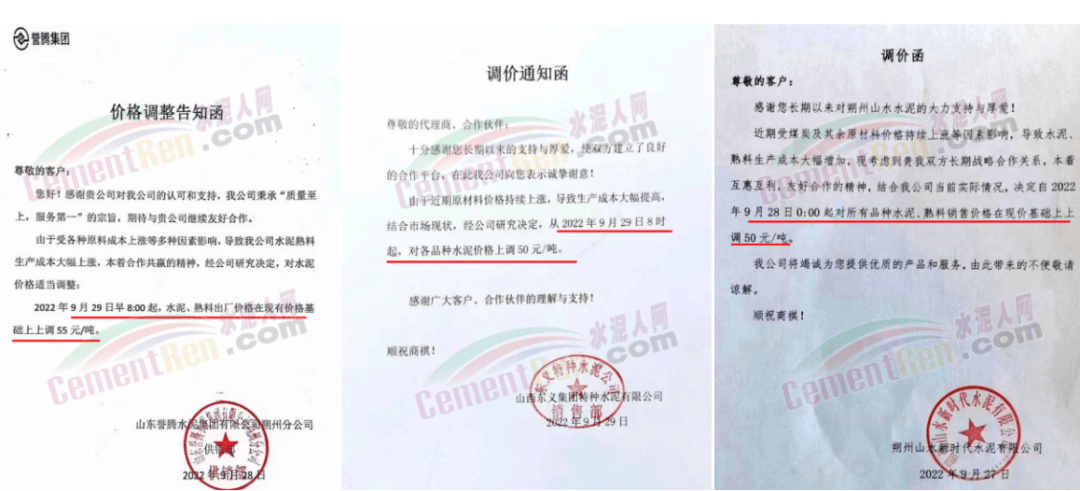 正如上述協(xié)會(huì)文件中所講,水泥價(jià)格自8月下旬開始回暖,在9月份正式進(jìn)入上行通道,到9月中下旬出現(xiàn)多區(qū)域普漲行情 ,個(gè)別省市自治區(qū)連續(xù)幾次上調(diào)價(jià)格,累計(jì)調(diào)價(jià)超100元/噸。