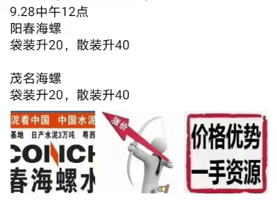 據(jù)經(jīng)銷商反饋,海螺水泥銷售經(jīng)理及經(jīng)銷商多在群里或公眾社交媒體上發(fā)布調(diào)價(jià)消息,但是落實(shí)到電商系統(tǒng)里的時(shí)間與通知時(shí)間偶爾也會(huì)有出入。