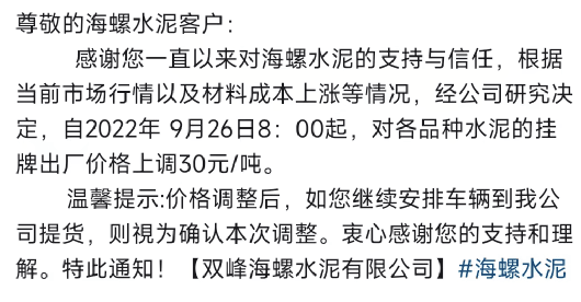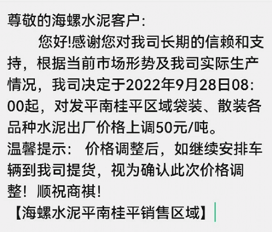 海螺漲價(jià)只發(fā)調(diào)價(jià)消息,不見蓋章公函