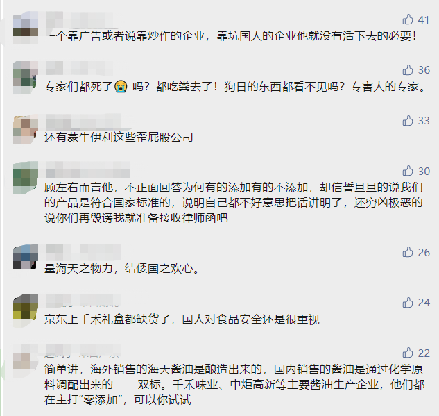 同時,中國調味品協(xié)會表示,“支持因輿情受到影響的調味品企業(yè)依法維權,追究網(wǎng)絡造謠者的法律責任。”