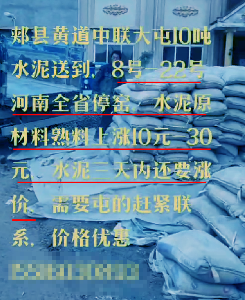 有水泥經(jīng)銷商通知:“8號-22號河南全省停窯,水泥原材料熟料上漲10元-30元,水泥三天內還要漲價,需要囤水泥的趕緊聯(lián)系!”