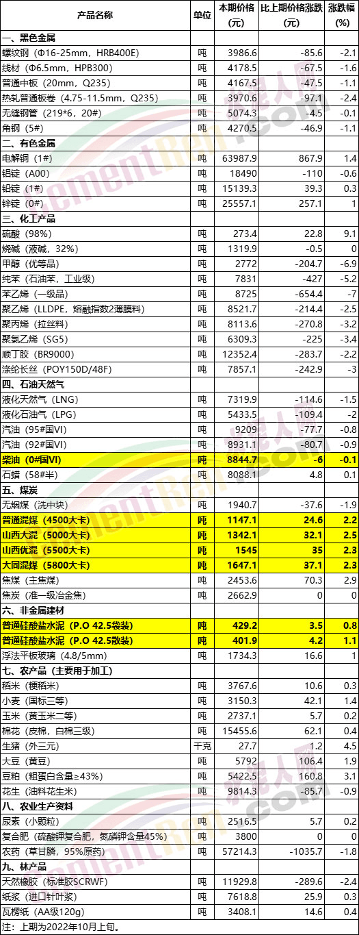 據(jù)水泥人網(wǎng)信息中心數(shù)據(jù),上周五(21日)煤炭產(chǎn)地出臺(tái)新一期外購(gòu)煤價(jià),化工煤在21日至28日采購(gòu)周期調(diào)漲煤價(jià)50元/噸。同時(shí),受疫情、運(yùn)輸、冬儲(chǔ)等方面原因,北港看漲情緒興起,中國(guó)電力企業(yè)聯(lián)合會(huì)發(fā)布的近期采購(gòu)價(jià)格,北港5500大卡采購(gòu)價(jià)格上漲23元/噸。