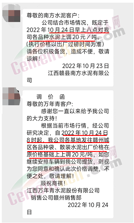 與此同時(shí),華南廣東、廣西,華東江浙滬、江西、福建以及西南區(qū)域云、貴川等多區(qū)域主要品牌企業(yè)上調(diào)水泥價(jià)格。水泥人網(wǎng)注意到,部分經(jīng)銷(xiāo)商調(diào)價(jià)通知中提到“我們不能控制漲價(jià),但我們有告知的責(zé)任,現(xiàn)在的價(jià)格,只能管現(xiàn)在” 。