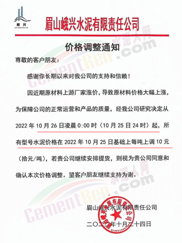 據(jù)了解,早在10月25日,包括粉磨站在內(nèi)的多家水泥企業(yè)曾經(jīng)通知上調(diào)水泥價格10元/噸。