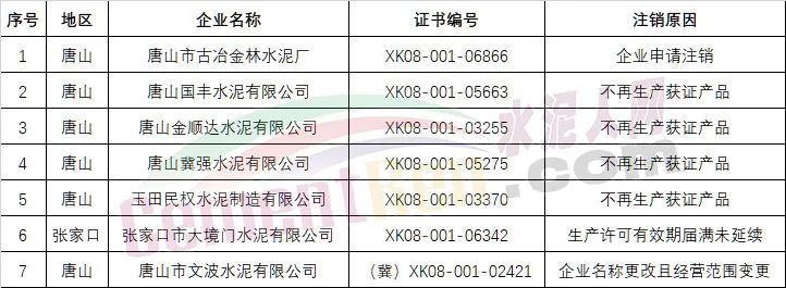內(nèi)蒙古自治區(qū)1家水泥企業(yè)生產(chǎn)許可證被注銷;