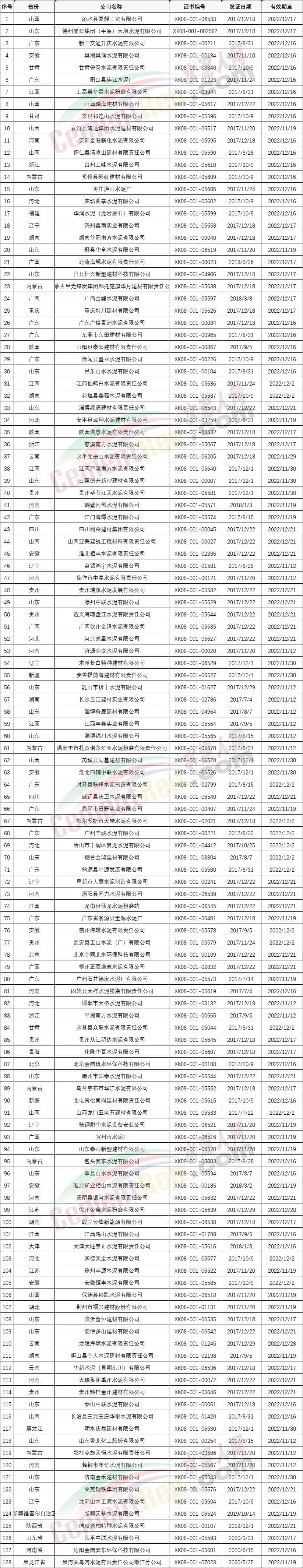 海南省3家水泥企業(yè)換發(fā)新編號證書,原證書注銷;