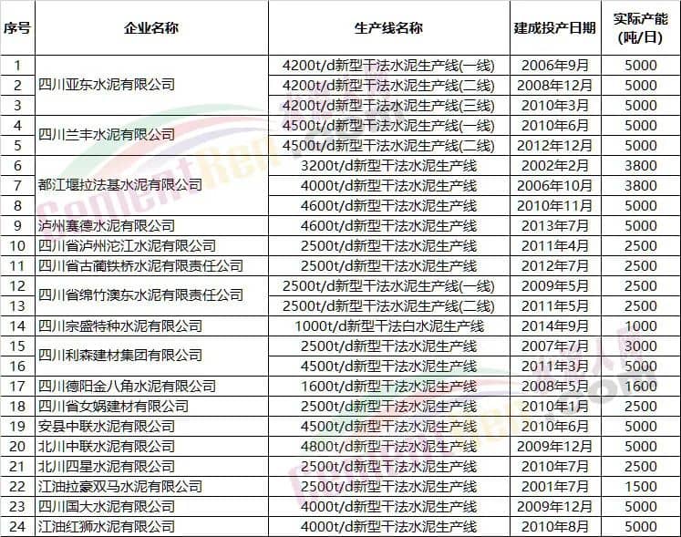 據(jù)水泥人網(wǎng)不完全統(tǒng)計,上述區(qū)域涉及四川、安徽、河北、黑龍江區(qū)域40多家水泥企業(yè)64條熟料生產(chǎn)線。