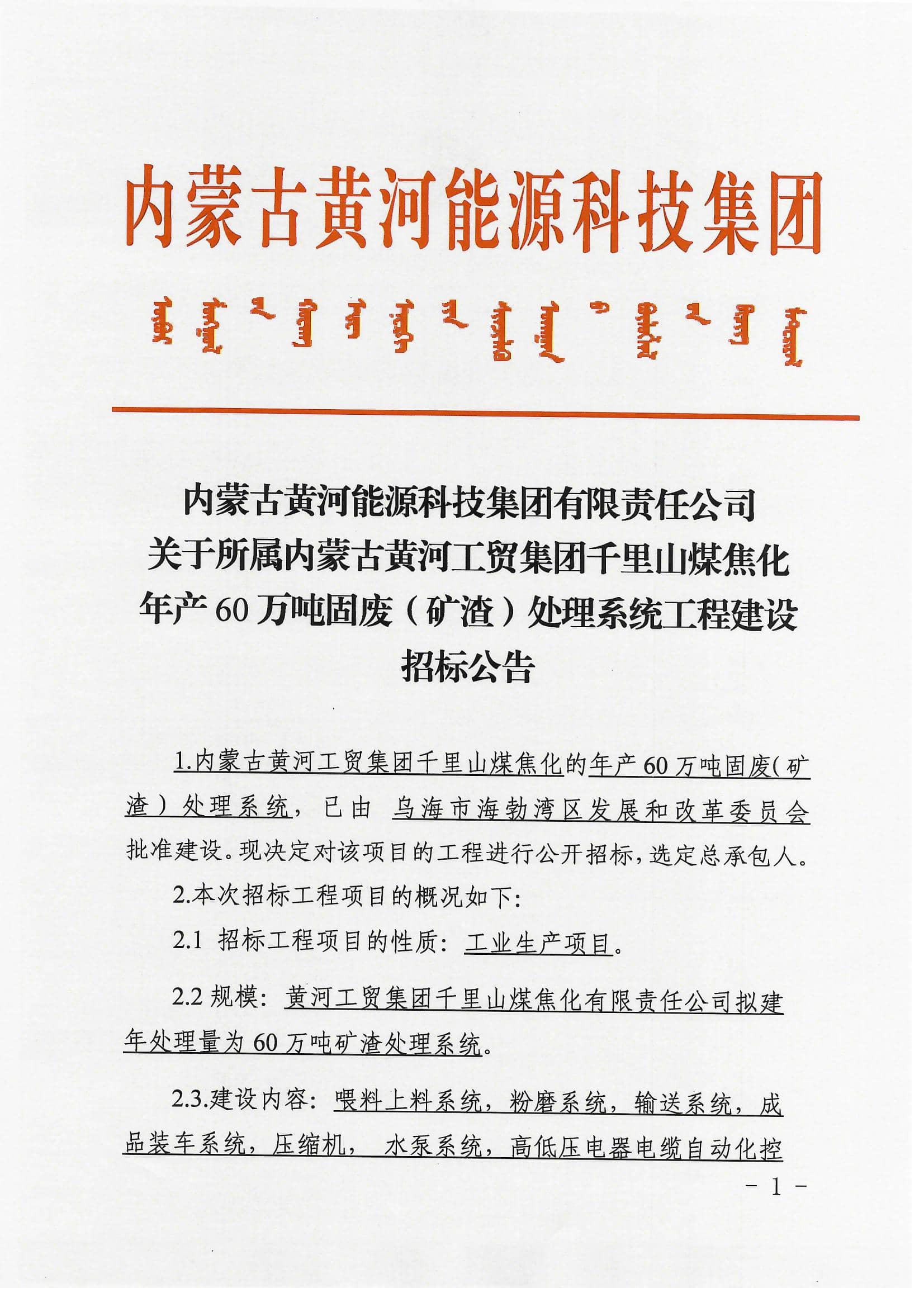 內蒙古黃河能源科技集團固廢處理系統(tǒng)工程建設招標公告
