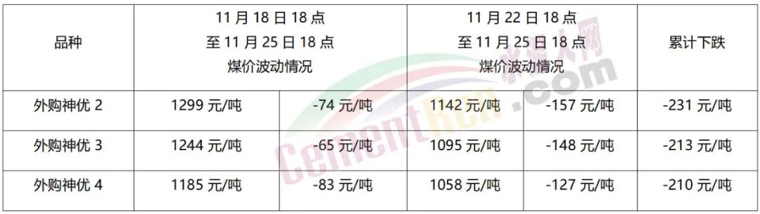 10月26日是北方港口煤價(jià)的轉(zhuǎn)折點(diǎn),自此市場(chǎng)煤價(jià)格止?jié)q入跌,至23日,4500大卡,單噸降幅270元左右,5000大卡、5500大卡單噸降幅近350元。起初,降幅基本維持在10元/噸以內(nèi),11月9日開始,降幅擴(kuò)大,單噸降幅近20元/噸,進(jìn)入本周降幅加大, 僅21-23日三天內(nèi),跌價(jià)就超100元/噸。4500大卡下跌90-100元/噸,5000大卡下跌110-120元/噸,5500大卡下跌130-140元/噸。