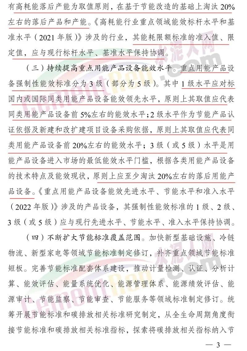 產(chǎn)能已經(jīng)飽和的行業(yè),主要產(chǎn)品能效水平原則上應(yīng)達(dá)到行業(yè)強(qiáng)制性能耗限額標(biāo)準(zhǔn)先進(jìn)值,主要用能產(chǎn)品設(shè)備能效水平原則上應(yīng)達(dá)到強(qiáng)制性能效標(biāo)準(zhǔn)1級水平。