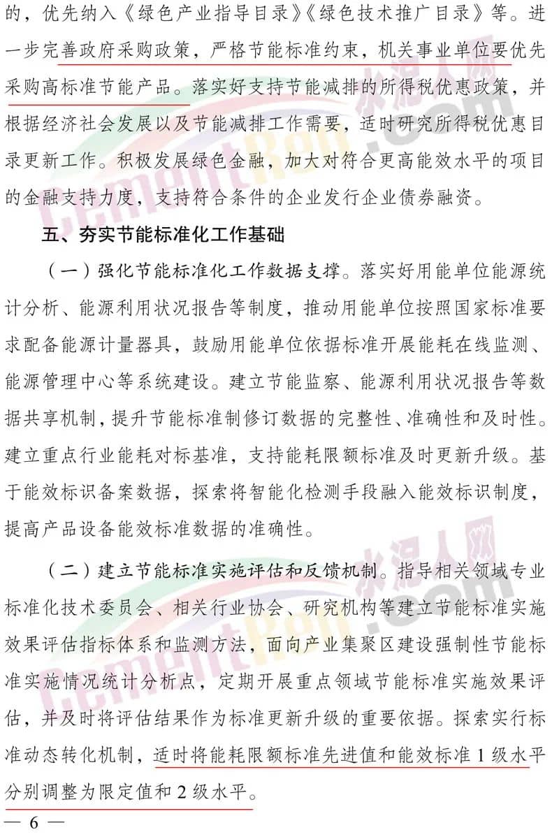 加強(qiáng)綜合性政策支持。對行業(yè)主要產(chǎn)品能效水平普遍優(yōu)于能耗限額標(biāo)準(zhǔn)先進(jìn)值或主要設(shè)備能效普遍優(yōu)于能效標(biāo)準(zhǔn)1級水平的,優(yōu)先納入《綠色產(chǎn)業(yè)指導(dǎo)目錄》《綠色技術(shù)推廣目錄》等。進(jìn)一步完善政府采購政策,嚴(yán)格節(jié)能標(biāo)準(zhǔn)約束,機(jī)關(guān)事業(yè)單位要優(yōu)先采購高標(biāo)準(zhǔn)節(jié)能產(chǎn)品。