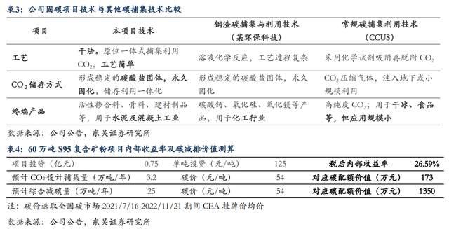 優(yōu)勢(shì)二:低成本捕碳&碳價(jià)值彈性85.69%,產(chǎn)品替代水泥熟料&礦粉節(jié)約水泥企業(yè)成本。