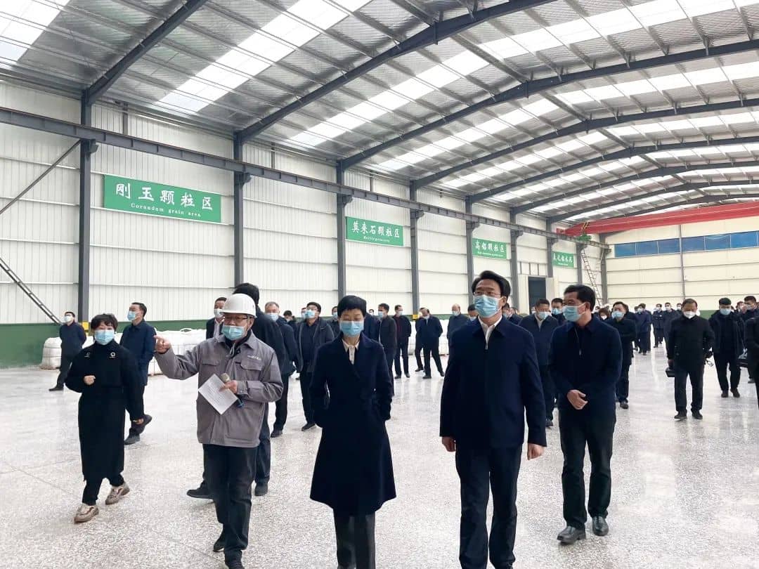 12月7日下午,新密市委書記陳春梅,新密市委副書記、市長程洋,帶領四大班子領導以及各局委鎮(zhèn)辦主要領導蒞臨公司實地觀摩新建年產(chǎn)7萬噸澆注料及預制件生產(chǎn)線項目。公司董事長慕松坡、總經(jīng)理曾魯舉、副總經(jīng)理慕懷東熱情接待并陪同參觀。