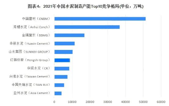 龍頭企業(yè)方面,截至2021年底,中國(不含港澳臺)前50家大企業(yè)集團(tuán)的水泥熟料設(shè)計(jì)產(chǎn)能共計(jì)14.2億噸,占全國總產(chǎn)能的77%。其中,前10家大企業(yè)集團(tuán)的水泥熟料產(chǎn)能占全國總產(chǎn)能的58%,比2019年增長1%。